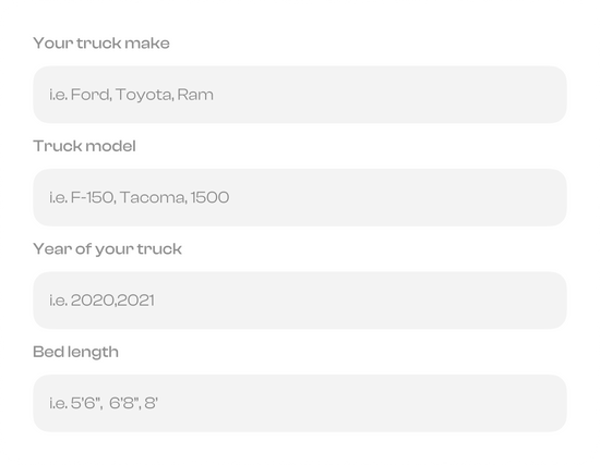 Pick your truck’s make, model, year, and bed length, then hit Continue
